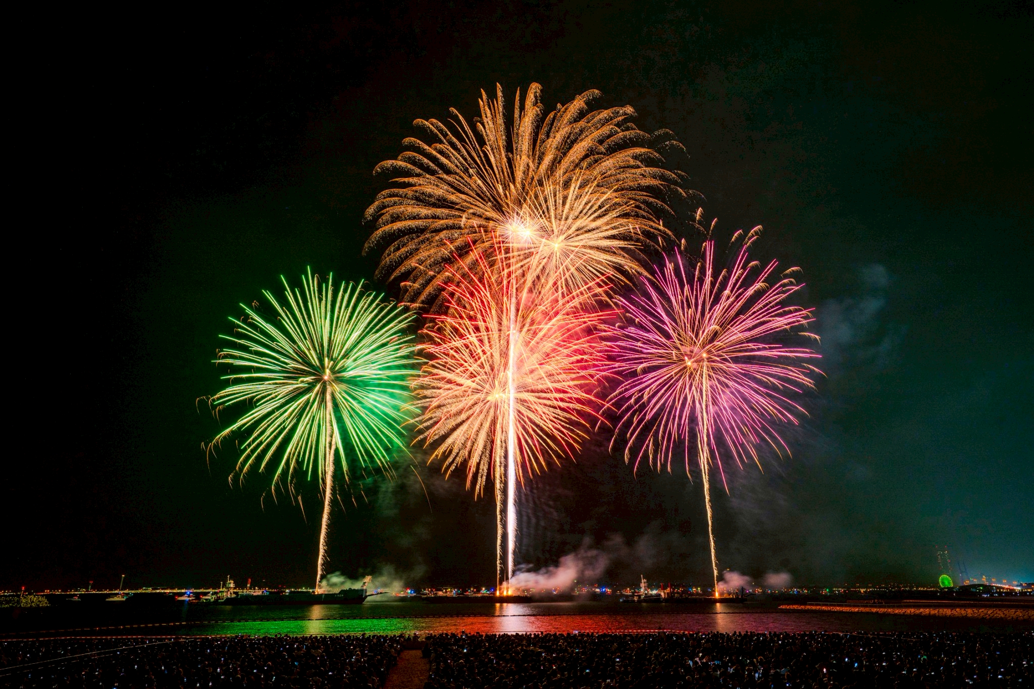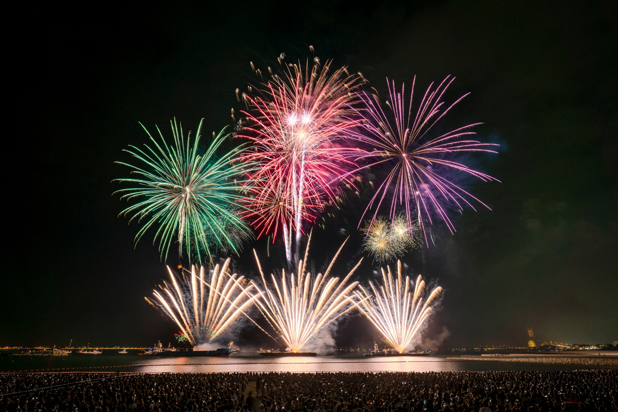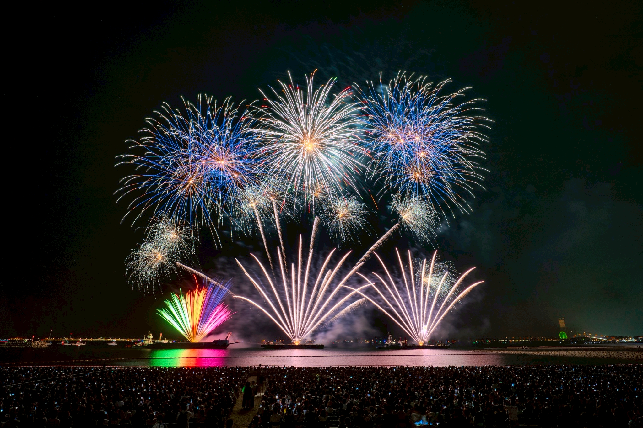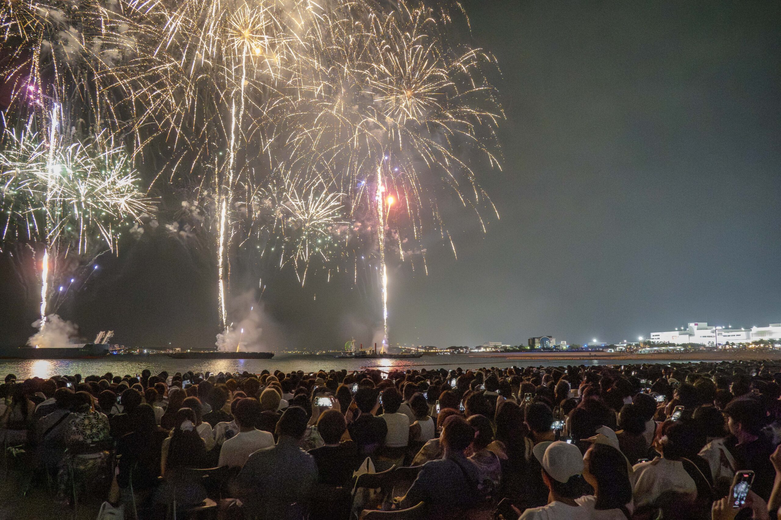 今年で5回目の開催を迎えた本大会は、花火の発数を昨年比1.3倍以上に増加し、3隻の台船からの同時打ち上げで迫力ある演出を実現。